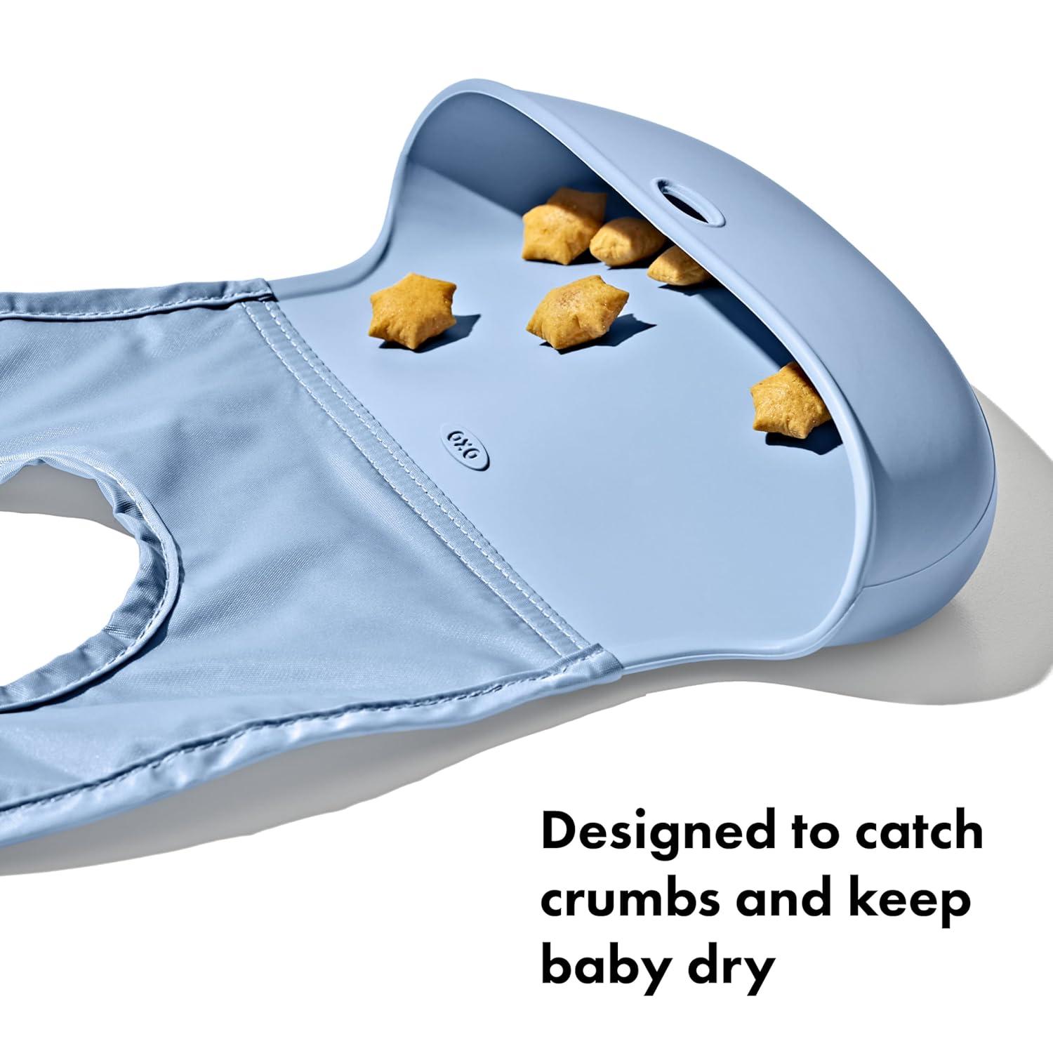 Wide, soft, food-safe silicone pocket effectively catches crumbs