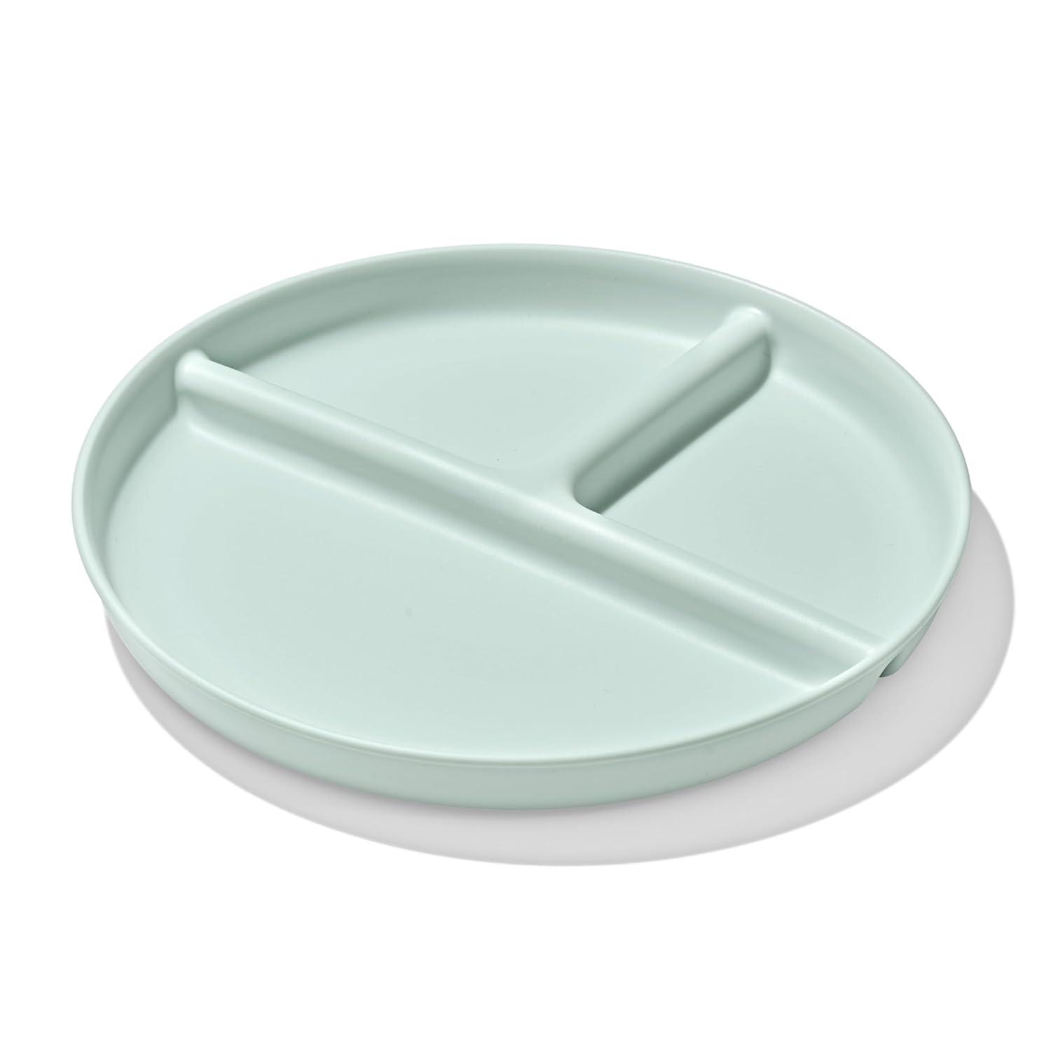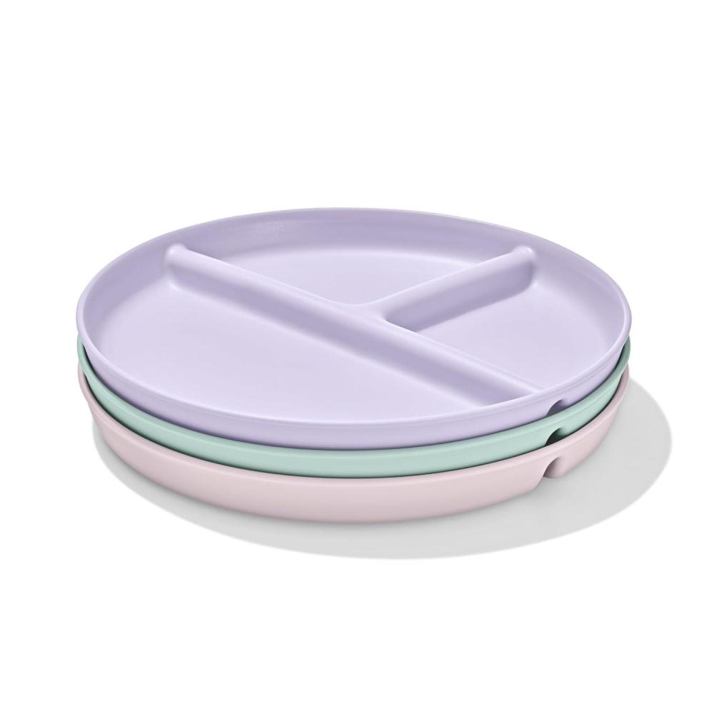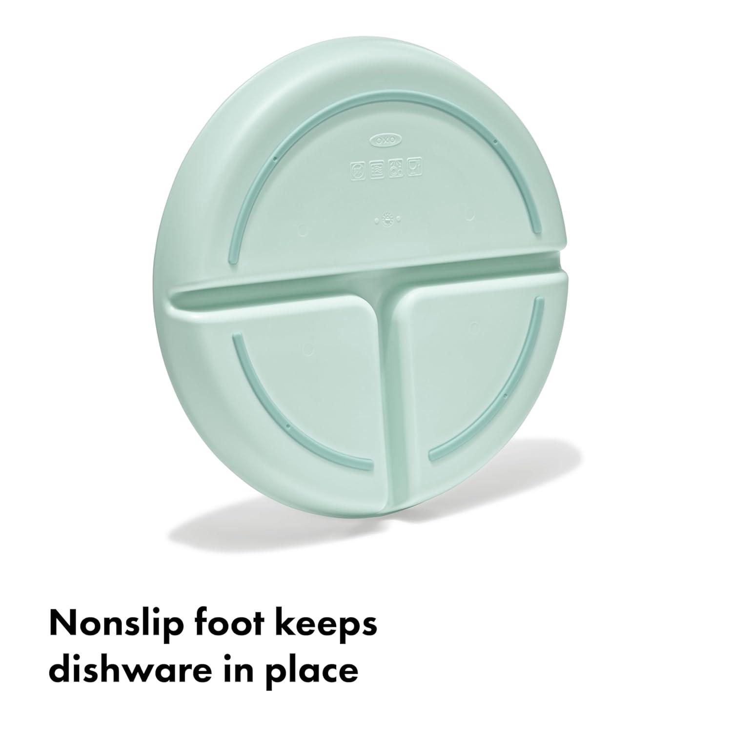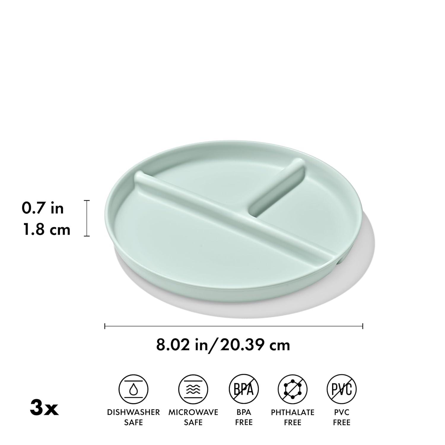 The durable, everyday dishware you need for your baby’s feeding journey is here. The OXO Tot Stackable Divided Plates – 3-pack can be used when baby is first learning to feed with solid foods at six months, and last through the toddler years and beyond. This dishware has been kid tested and parent approved. These stackable divided plates feature slightly curved side walls with a height that makes it easy for kids to cut and scoop food against them as they learn to feed themselves. The raised edge also helps to prevent spills. The interior of the plate is divided into three sections – one half and two quarters for easy portioning so your tot can get accustomed to seeing different food groups. With a nonslip foot this dishware will stay in place on the table while tot learns to use big kid dishes. Save space and keep the cupboard organized as you incorporate toddler plates and bowls by stacking the dishes snugly together or with big kid dishware. These divided plates aren’t just for kid’s meals – they’re handy for snacks or meal prep for adults, too! Parents can have peace of mind knowing this dishware is BPA free, phthalate free and PVC free. And it's microwave safe and dishwasher safe.