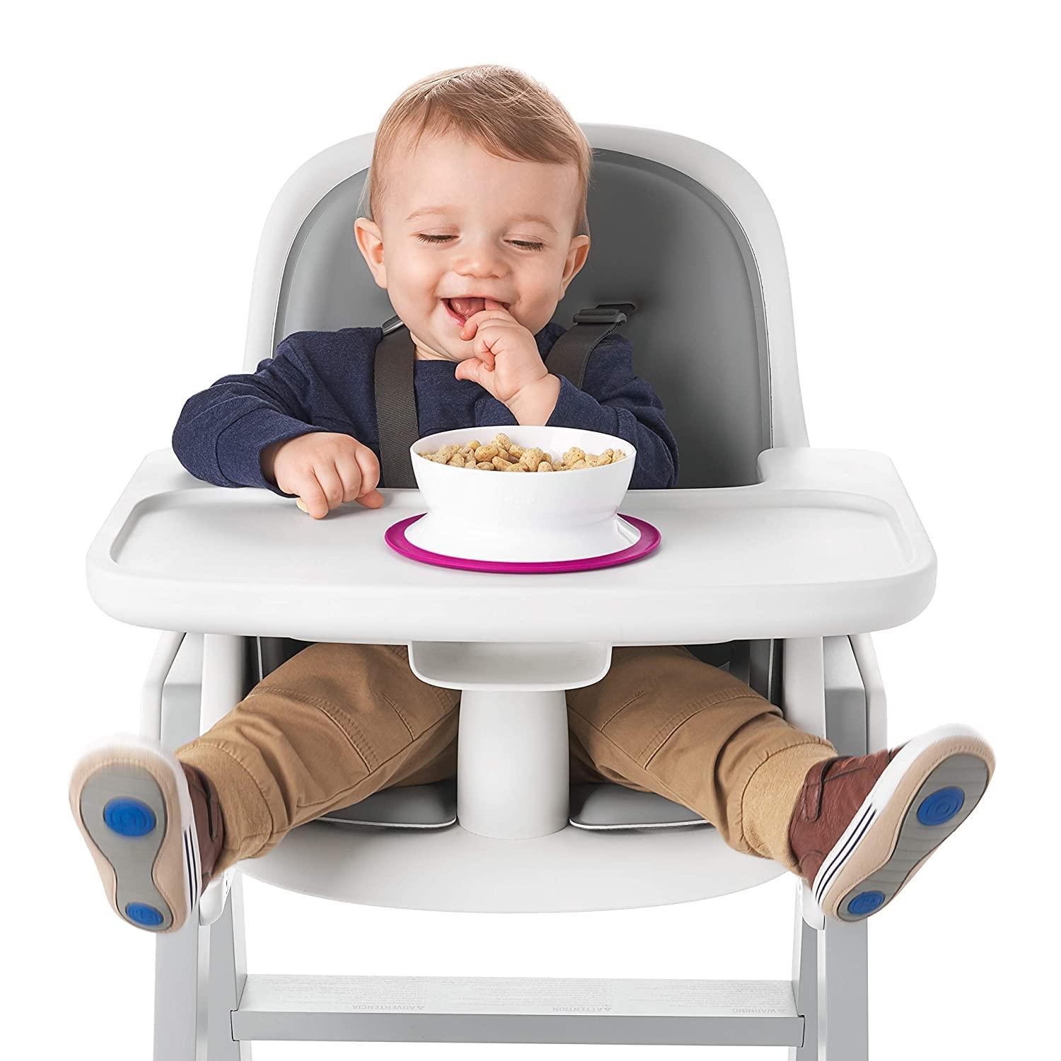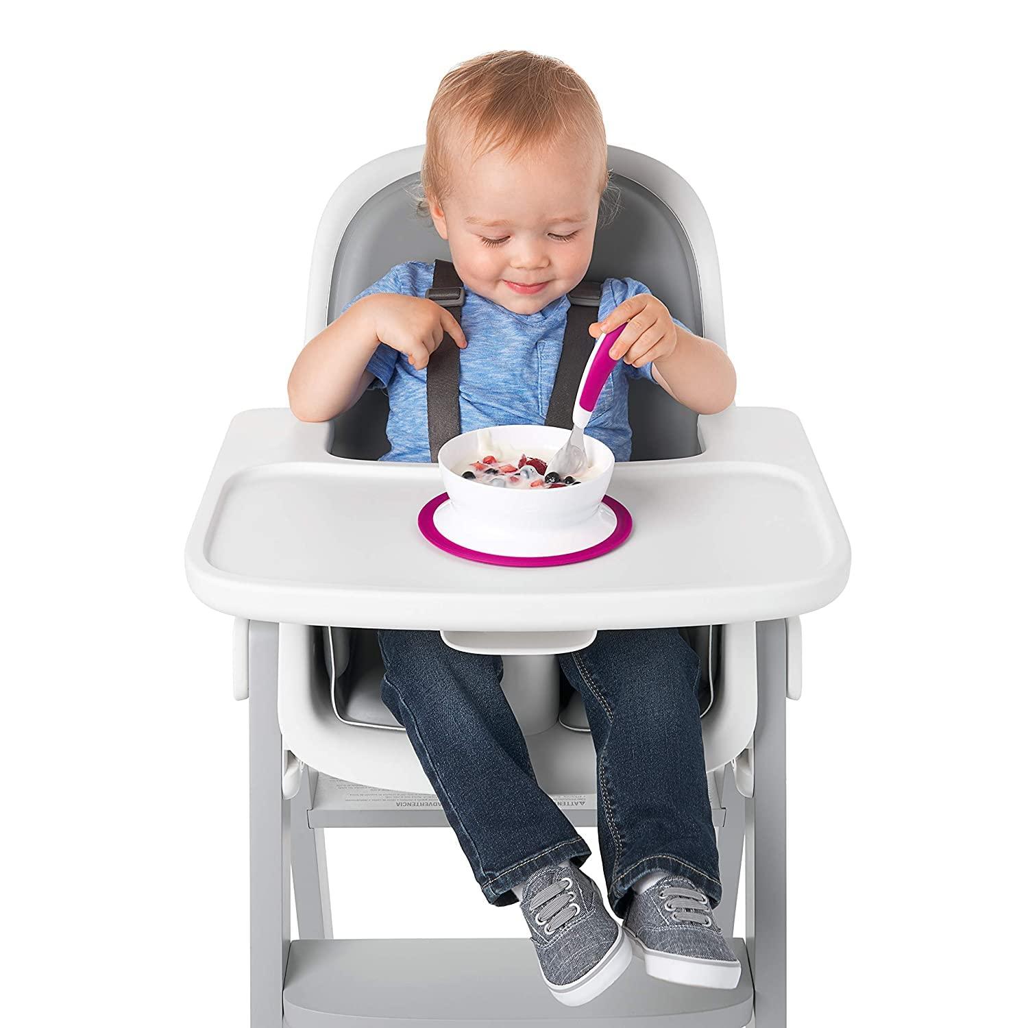 Cut down on mealtime mess with the OXO Tot Stick & Stay Suction Bowl. The Bowl features a suction base that sticks securely to surfaces until mealtime is over, preventing sliding, slipping and tipping. The parent-friendly opening makes removing the Bowl simple for adults, but tough for tots. Tall walls allow for easy scooping and encourage self-feeding. Twist the Bowl and base apart for quick cleaning in the dishwasher.