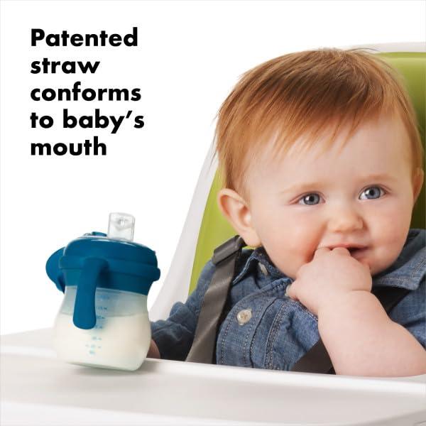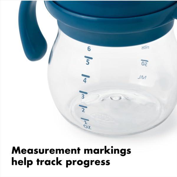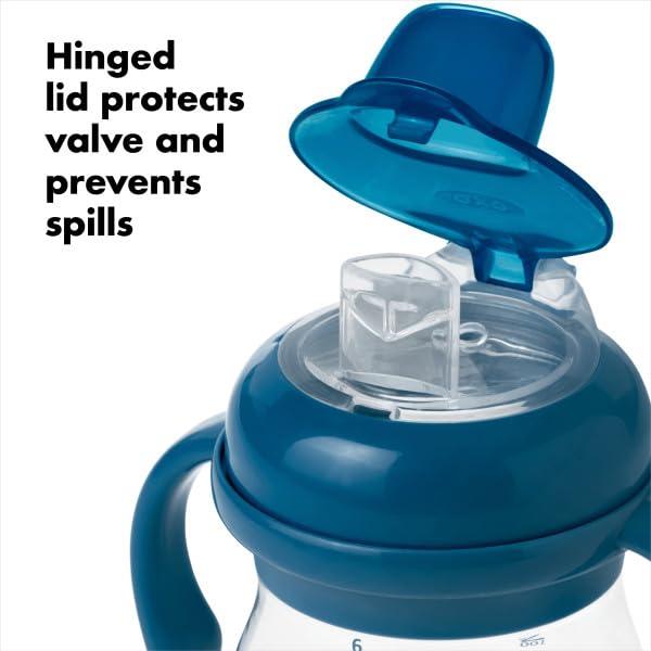 OXO Tot Transitions Soft Spout Sippy Cup with Removable Handles – 6 oz. – Blossom(Navy)