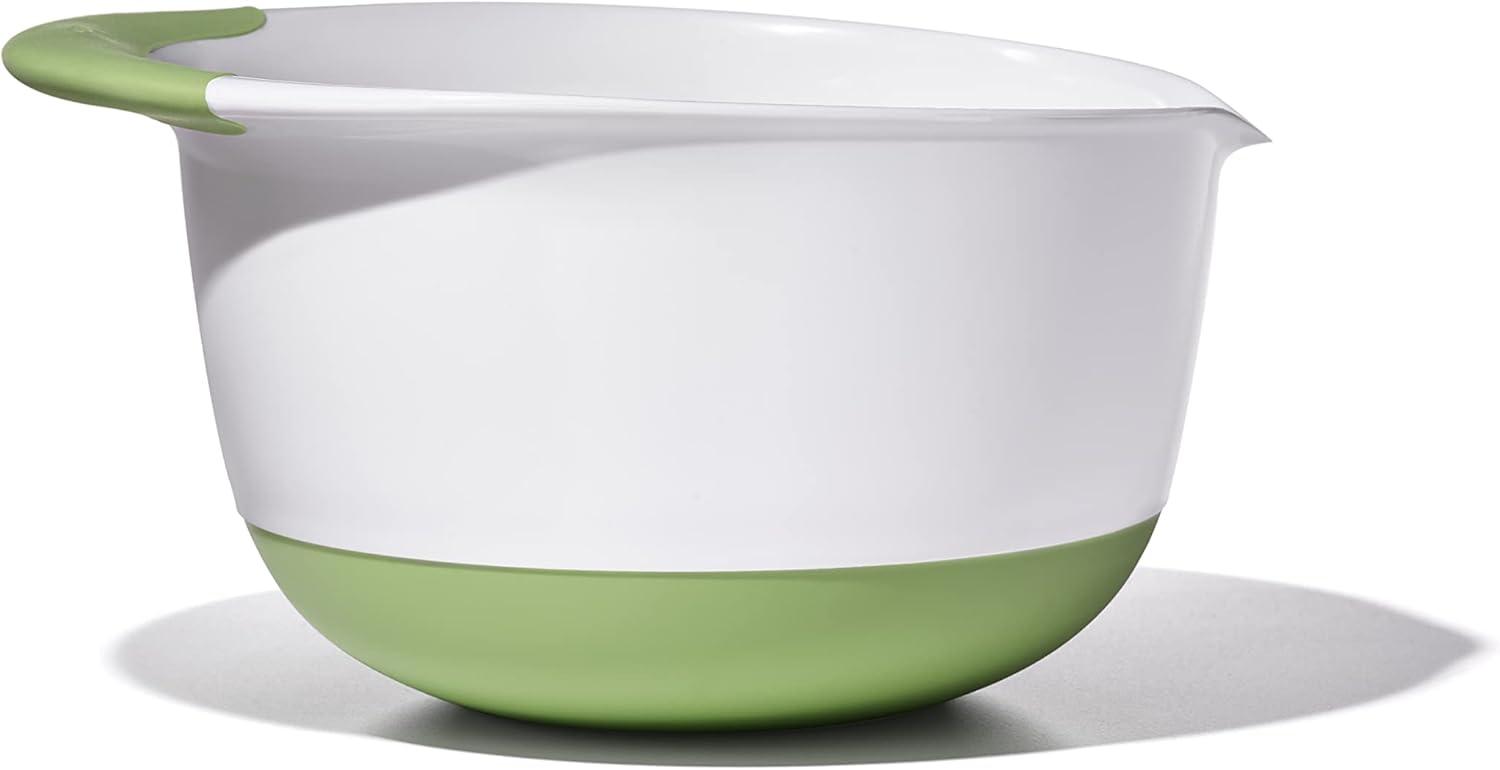 The OXO Good Grips 3-Piece Mixing Bowl Set helps you tackle any culinary project, from whisking eggs to mixing cupcake batter to making marinade. The 1.5-quart, 3-quart and 5-quart Bowls feature soft, non-slip handles. Non-skid bottoms stabilize the Bowls on any kitchen surface, even at an angle. Wide lips and spouts make pouring ingredients easier. Plus, the Mixing Bowls nest neatly for convenient storage. BPA free and dishwasher safe.