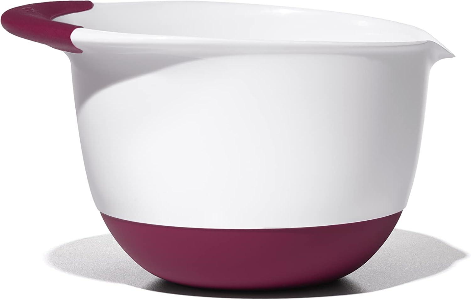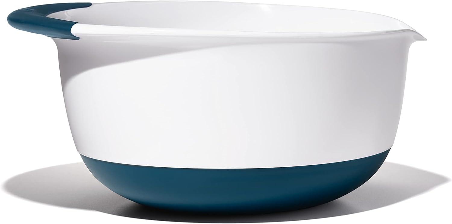 OXO,plastic Good Grips 3-Piece Mixing Bowl Set – Blueberry, Jam & Seltzer Handles​,4.7 LITERS, Large(White/Black)